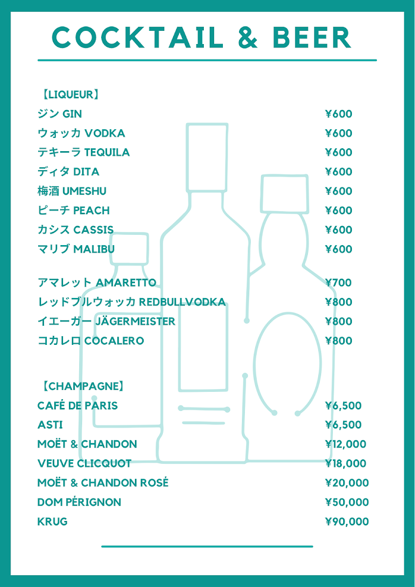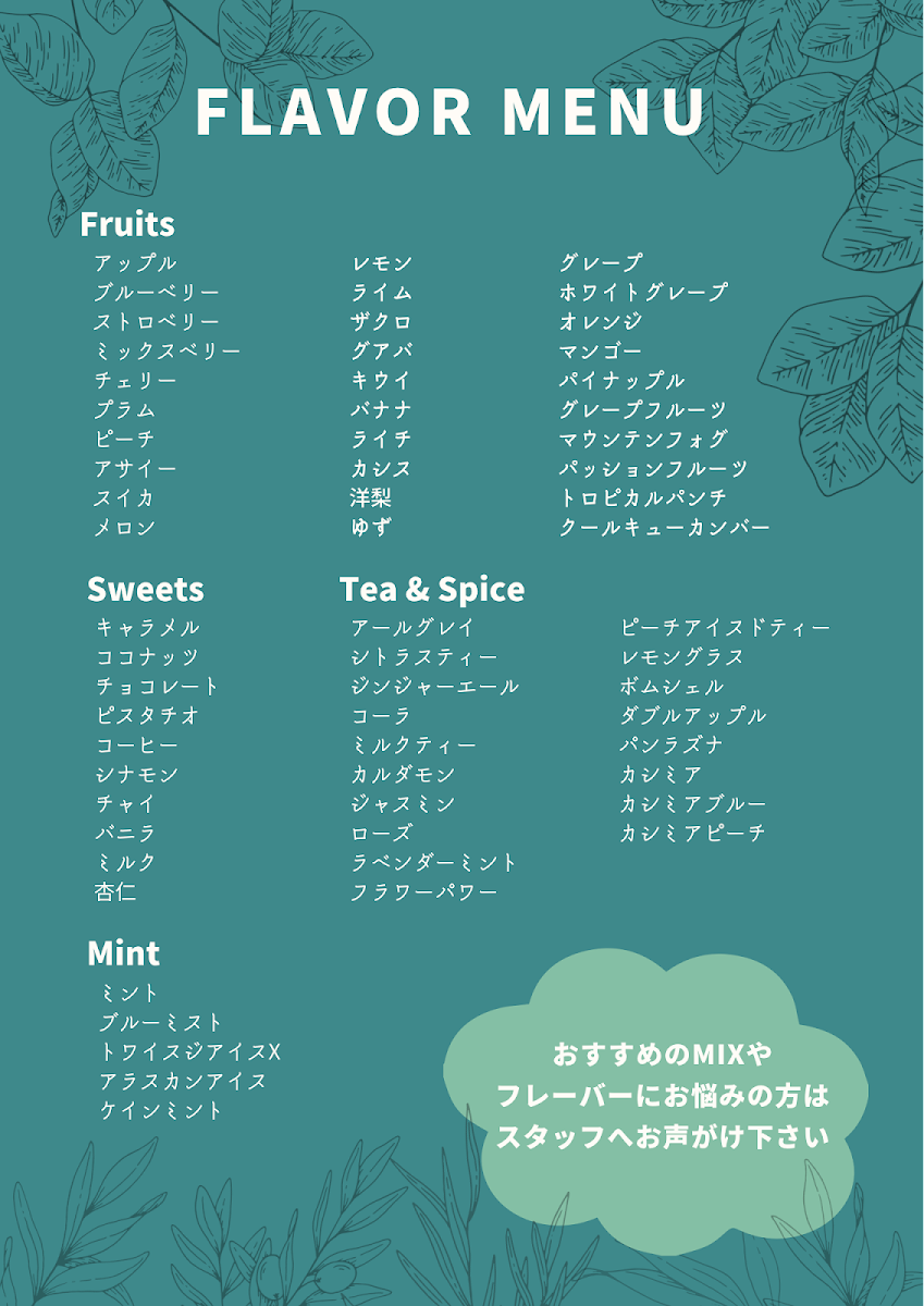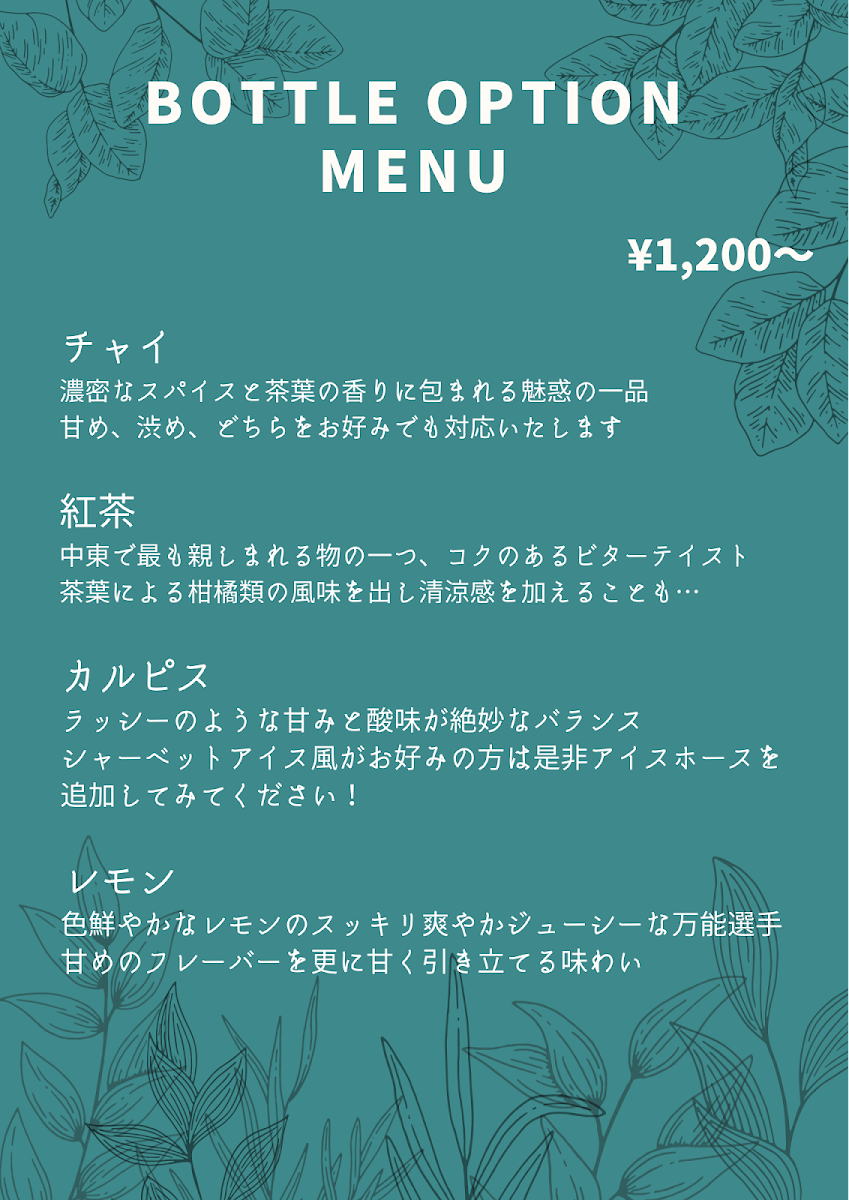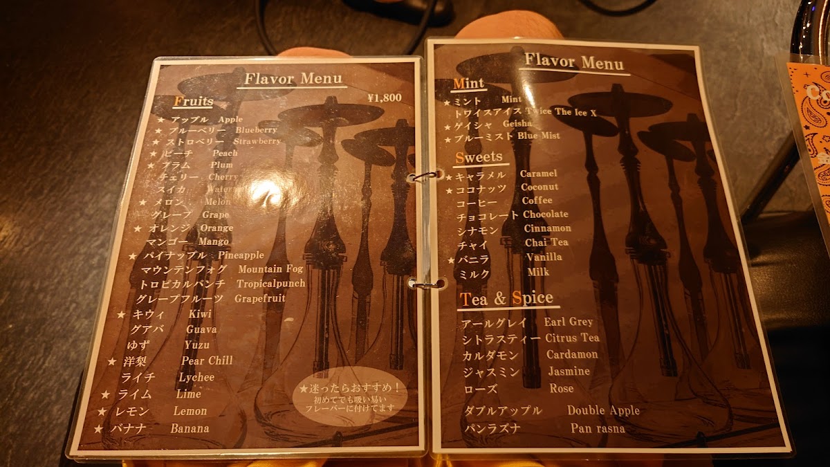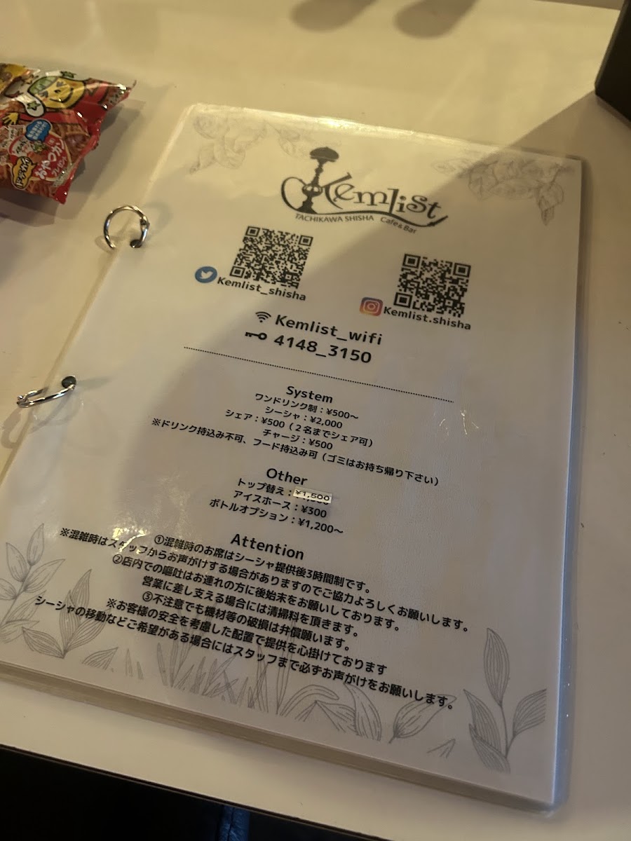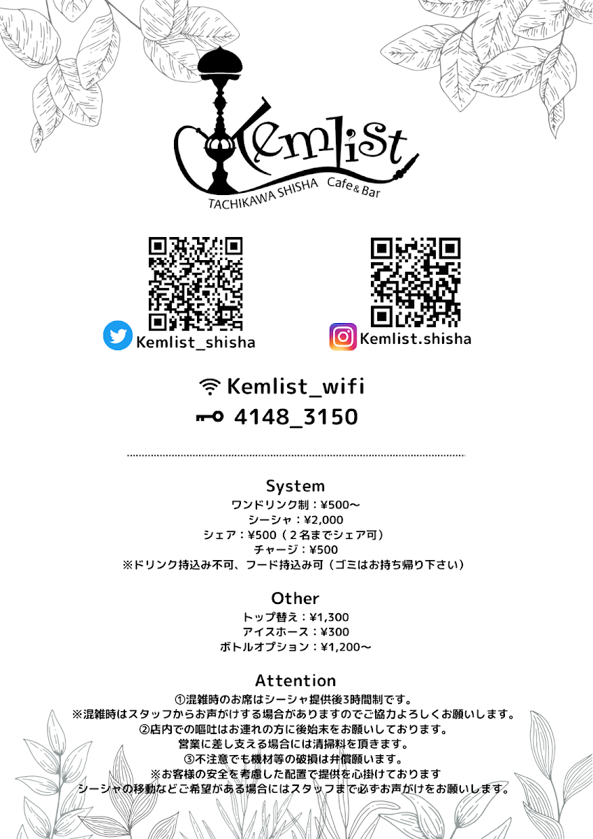 立川シーシャカフェ&バー kemlist ケムリスト Menu